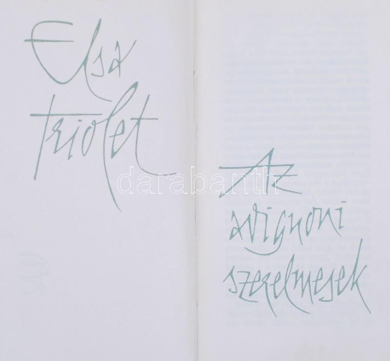 Triolet, Elsa: Az avignoni szerelmesek. Bp., Európa Könyvkiadó. Litogr... https://www.darabanth.com/de/206-Fernauktion/206.0/Andere-Sammelgebiete/Bucher-Sonstige-Raritaten~10037/Triolet-Elsa-Az-avignoni-szerelmesek-Bp-Europa-Konyvkiado-Litografiaval-illusztralt-kia~II834706