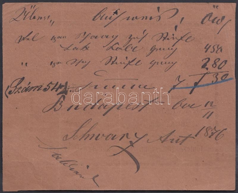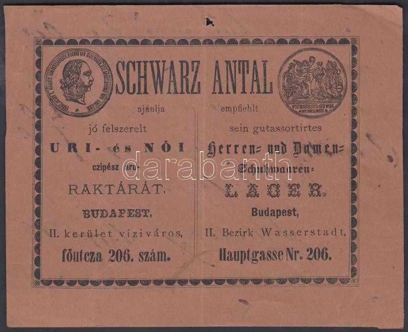 1876 Bp. II., Schwarz Antal Úri- és Női cipészáruraktára által kiállít... https://www.darabanth.com/de/206-Fernauktion/206.0/Andere-Sammelgebiete/Dokument~10018/1876-Bp-II-Schwarz-Antal-Uri-es-Noi-cipeszaruraktara-altal-kiallitott-szamla~II830400