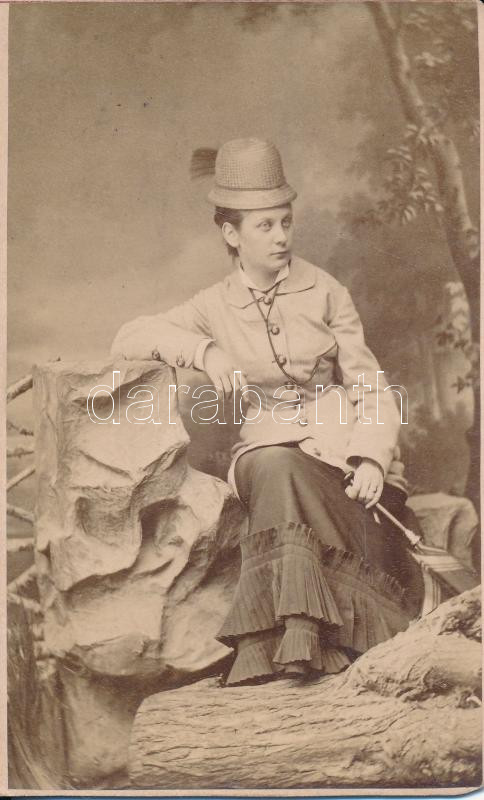 Beschreibung: cca 1890-1900 Lőger Gusztáv (Nyitra, Pöstyén): Bahó Erzsike postamesterné Pöstyénben, régi, keményhátú fénykép, 10x6 cm
