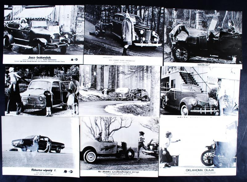 Beschreibung: cca 1950-1980 Régi autók régi filmekből, 13 db filmfotó feliratozva, 18x24 cm