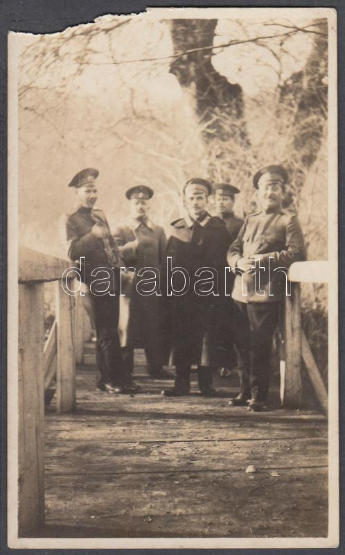 Beschreibung: cca 1950 Sztálin (1946-1953) társai körében, fotóképeslap, sarka hiányzik, 8x13 cm