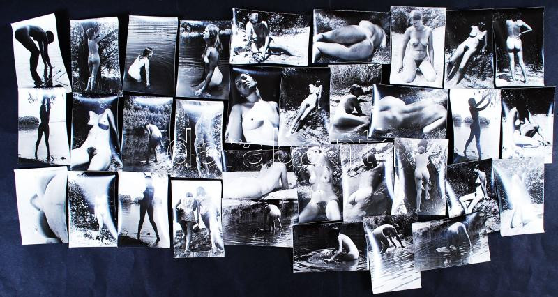 Beschreibung: cca 1960-1970 Finoman erotikus aktfotók természeti környezetben, 33 db fénykép, 6x9 cm /