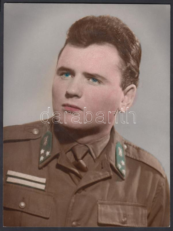 cca 1960-1970 Határőr szakaszvezető portréja, színezett fotó, 24x18 cm https://www.darabanth.com/de/206-Fernauktion/206.0/Andere-Sammelgebiete/Foto~10022/cca-1960-1970-Hataror-szakaszvezeto-portreja-szinezett-foto-24x18-cm~II828159