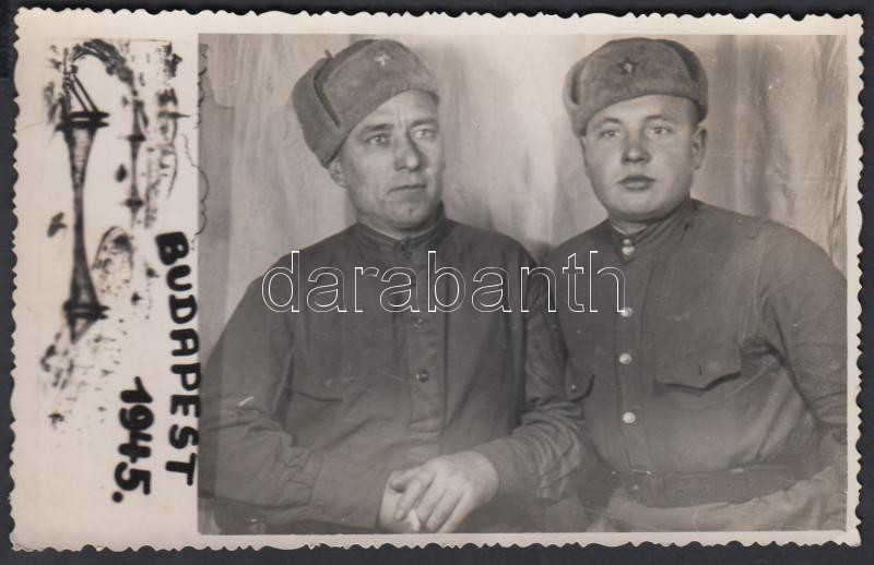 1945 Fekete György: Emlék Budapestről, orosz katonák, fotóképeslap, 8,... https://www.darabanth.com/de/206-Fernauktion/206.0/Andere-Sammelgebiete/Militaria~10010/1945-Fekete-Gyorgy-Emlek-Budapestrol-orosz-katonak-fotokepeslap-8-5x14-cm--3Cbr3ERussian-s~II828522