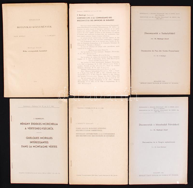 Dr. Bánhegyi József: 6db gombászati különlenyomat: Discomyceták a Székelyföldről, Néhány érdekes Morchella a Vérteshegységből, Ritka csészegombák hazánkból stb.