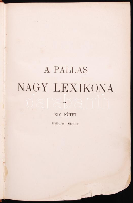 A Pallas nagy lexikona 14. kötet. Bp., 1894. Számos litho képpel és té... https://www.darabanth.com/de/207-Fernauktion/207.0/Andere-Sammelgebiete/Bucher-Sonstige-Raritaten~600040/A-Pallas-nagy-lexikona-14-kotet-Bp-1894-Szamos-litho-keppel-es-terkeppel-Aranyozott-fel~II712076