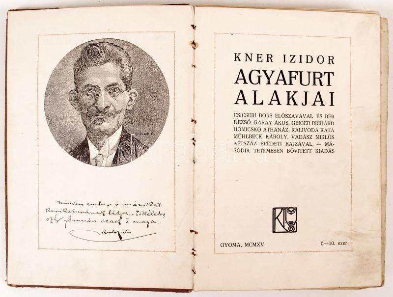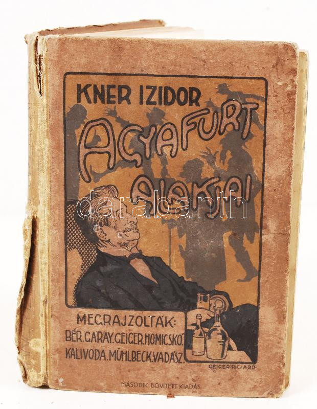 Kner Izidor agyafurt alakjai. Csicseri Bors elõszavával és Bér Dezsõ, Garay Ákos, Geiger Richárd, Homicskó Athanáz, Kalivoda Kata, Mühlbeck Károly, Vadász Miklós kétszáz eredeti rajzával. 2. tetemesen bõvített kiadás. Gyoma, 1915, Kner. Erősen megviselt kötésben