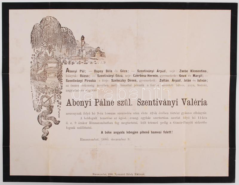 1880 Díszes, illusztrált gyászjelentés https://www.darabanth.com/de/207-Fernauktion/207.0/Andere-Sammelgebiete/Drucksachen~600026/1880-Diszes-illusztralt-gyaszjelentes~II802220