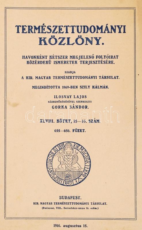 1916 Természettudományi közlöny 9 száma pótfüzetekkel. Vegyes állapot... https://www.darabanth.com/de/207-Fernauktion/207.0/Andere-Sammelgebiete/Drucksachen~600026/1916-Termeszettudomanyi-kozlony-9-szama-potfuzetekkel-Vegyes-allapotu~II825216