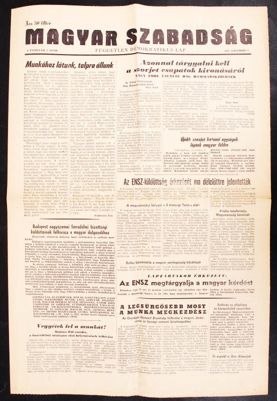 1956. Magyar Szabadság, Független Demokratikus Lap, I. évfolyam 3. szá... https://www.darabanth.com/de/207-Fernauktion/207.0/Andere-Sammelgebiete/Drucksachen~600026/1956-Magyar-Szabadsag-Fuggetlen-Demokratikus-Lap-I-evfolyam-3-szam-1956-november-3~II825255