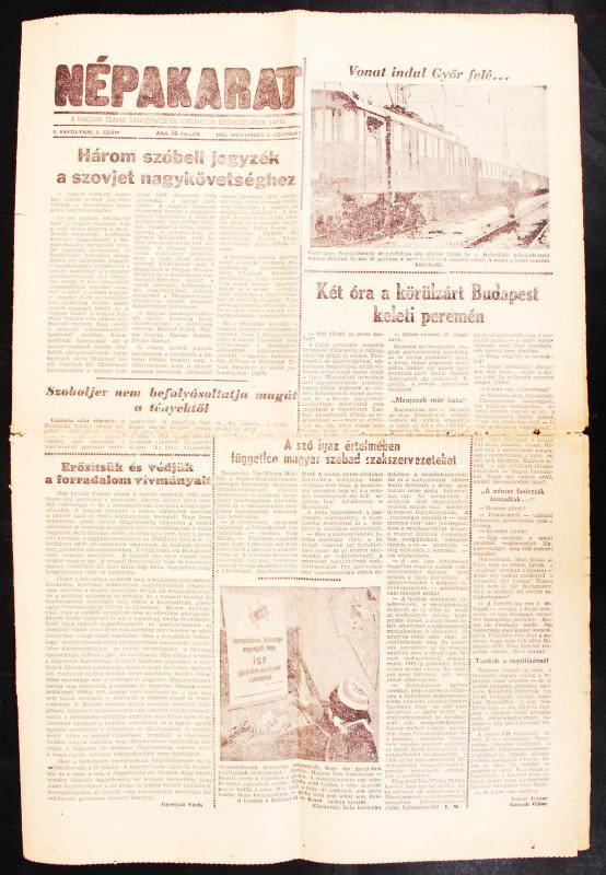 Beschreibung: 1956. Népakarat, a Magyar Szabad Szakszervezetek Országos Szövetségének Lapja, I. évfolyam 3. szám, 1956. november 3.