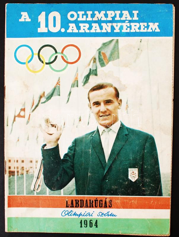 1964 A 10. olimpiai aranyérem, Labdarúgás, Olimpiai szám https://www.darabanth.com/de/207-Fernauktion/207.0/Andere-Sammelgebiete/Drucksachen~600026/1964-A-10-olimpiai-aranyerem-Labdarugas-Olimpiai-szam~II843450