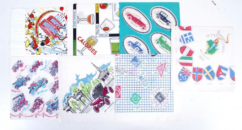 Beschreibung: cca 1950 6 db papírszalvéta, közötte Disney és Melbournei Olimpiára kiadott is