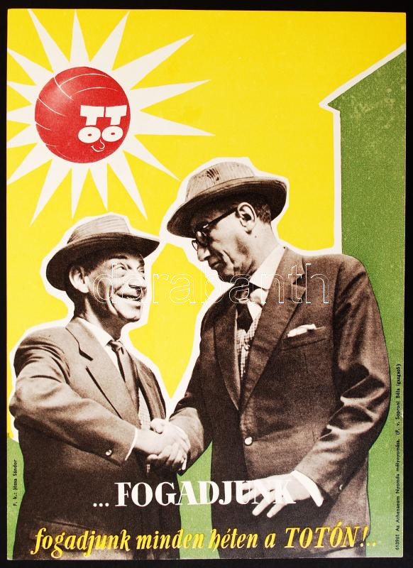 cca 1960 "...Fogadjunk minden héten a TOTÓN!.." feliratú TOT... https://www.darabanth.com/de/207-Fernauktion/207.0/Andere-Sammelgebiete/Drucksachen~600026/cca-1960-Fogadjunk-minden-heten-a-TOTON-feliratu-TOTO-plakat~II843500