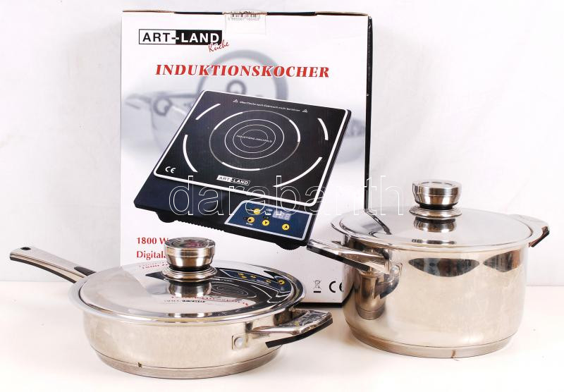 Beschreibung: Indukciós főzőlap, működik, eredeti dobozába, 2 db hozzávaló fedeles lábassal, újszerű állapotban, 40×35 cm