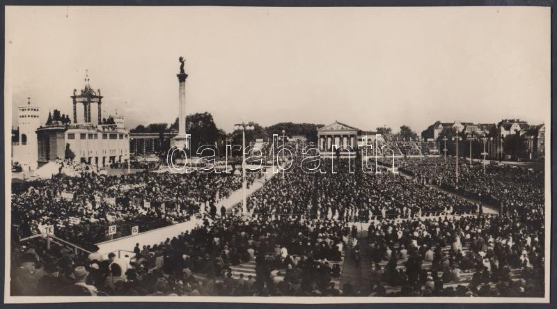 Beschreibung: 1938 Fotó Lengyel: Eucharisztikus Világkongresszus Budapesten, aláírással, pecsételt jelzett vintage riportfotó, 12x23 cm
