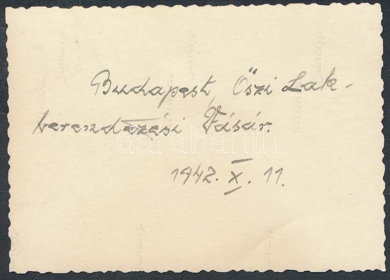 1942 Bp., Őszi Lakberendezési Vásár, hátoldalon feliratozva, 8x6 cm https://www.darabanth.com/de/207-Fernauktion/207.0/Andere-Sammelgebiete/Foto~600018/1942-Bp-Oszi-Lakberendezesi-Vasar-hatoldalon-feliratozva-8x6-cm~II839790