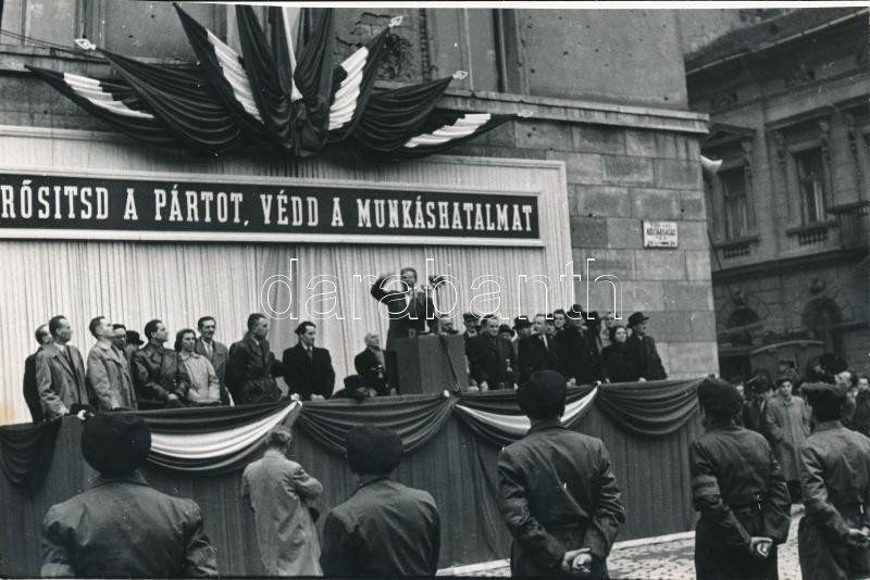 Beschreibung: 1957 Marosán György beszédet mond a Köztársaság téren, 12x18 cm