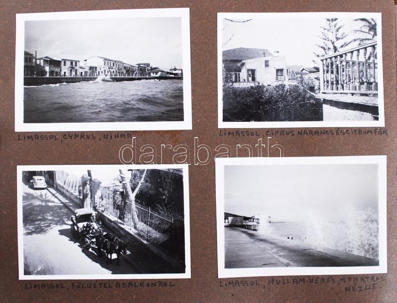 cca 1930 Földközi tengeri utazás: Ciprus, A Szuezi -csatorna... kb 70 db feliratozott fotó albumban / editerranian travel Suez, Cyprus, cca 70 photos in album