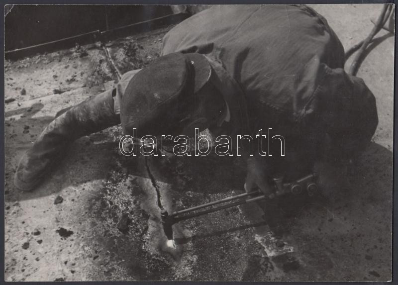 cca 1950-1960 Szabó Némedi Vince (Budapest Főváros Elektromos Művei Fényképező Szakosztálya): Vágó pisztollyal, vintage fotóművészeti alkotás, feliratozva, pecsételve, 17x24 cm