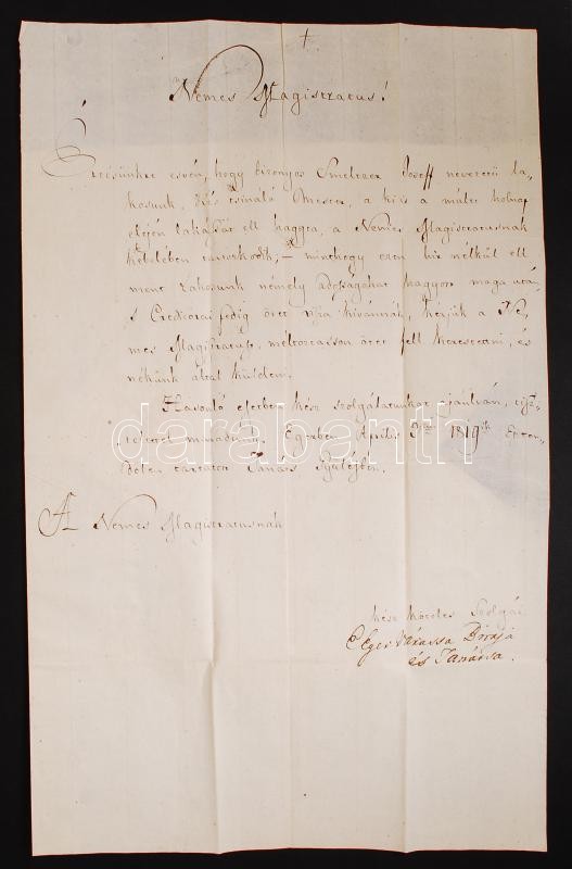 1819 Eger, Eger város Bírájától és Tanácsától adósságot hátrahagyó sze... https://www.darabanth.com/de/207-Fernauktion/207.0/Andere-Sammelgebiete/Historische-Dokumenten-Handschriften~600016/1819-Eger-Eger-varos-Birajatol-es-Tanacsatol-adossagot-hatrahagyo-szemely-felkutatas~II842914