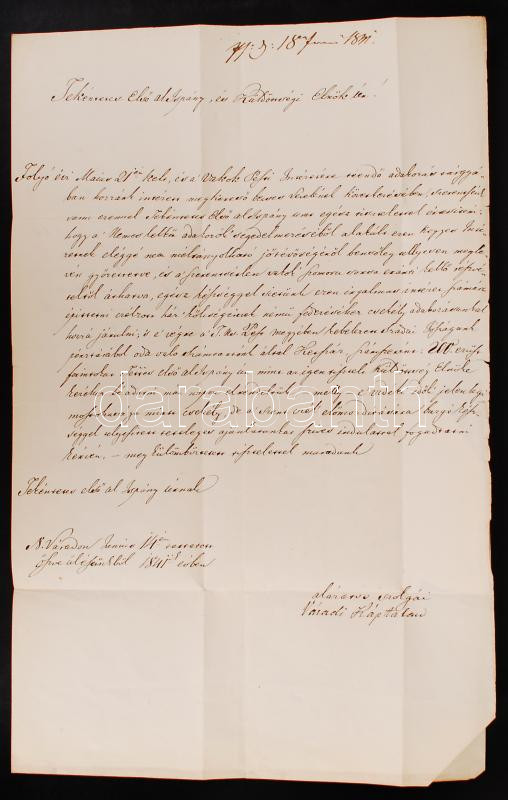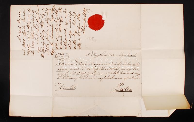 1841 Nagyvárad, A nagyváradi káptalantól a Vakok Pesti Intézetével kapcsolatos Pestre küldött levél viaszpecséttel