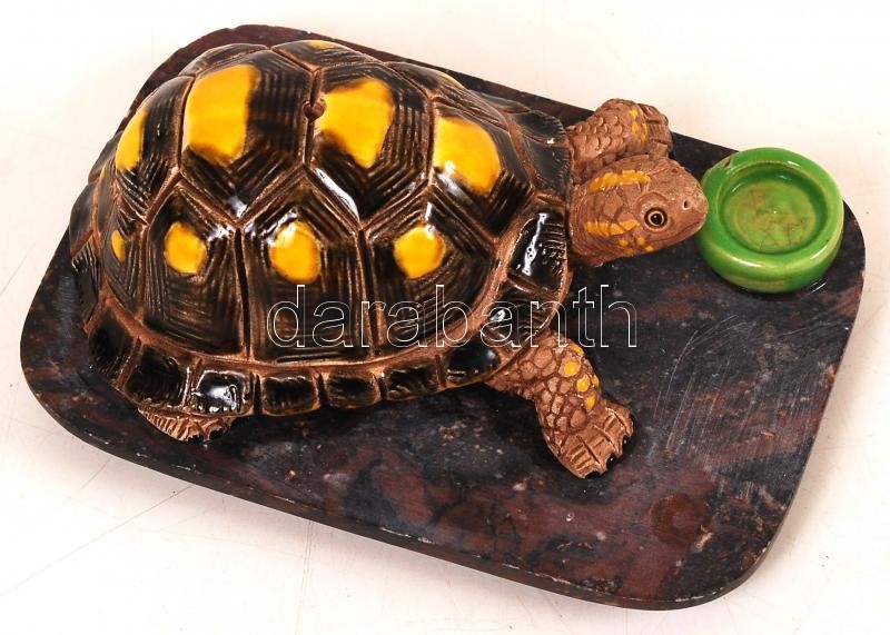 Beschreibung: Teknősbéka, festett kerámia, ragasztott fejjel, apró lepattanással, 11×8 cm