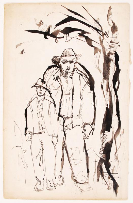 Jelzés nélkül: Apa és fia. Tus, papír, 25×16 cm https://www.darabanth.com/de/207-Fernauktion/207.0/Andere-Sammelgebiete/Kunst~600001/Jelzes-nelkul-Apa-es-fia-Tus-papir-25C39716-cm~II837668
