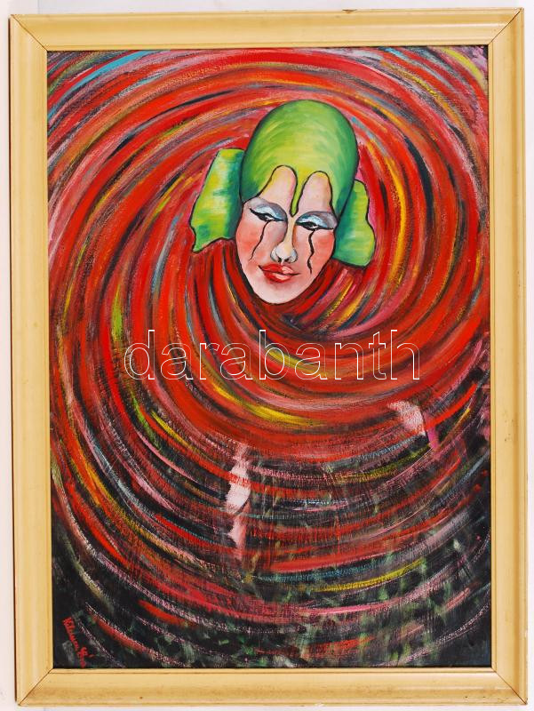 Kelemen Éva (1958-): Bohóc. Olaj, farost, jelzett, keretben, 70×50 cm https://www.darabanth.com/de/207-Fernauktion/207.0/Andere-Sammelgebiete/Kunst~600001/Kelemen-Eva-1958-Bohoc-Olaj-farost-jelzett-keretben-70C39750-cm~II827393