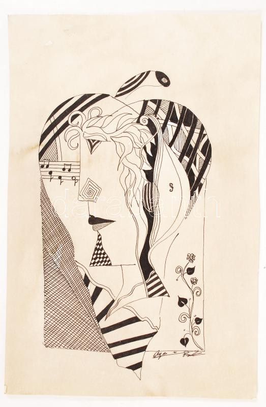Olvashatatlan jelzéssel: Kottát olvasó. Tus, papír, 22×14 cm https://www.darabanth.com/de/207-Fernauktion/207.0/Andere-Sammelgebiete/Kunst~600001/Olvashatatlan-jelzessel-Kottat-olvaso-Tus-papir-22C39714-cm~II839222