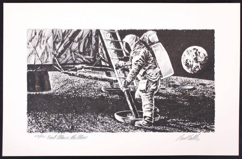 Paul Calle (1928-2010): First man on the Moon; lithográfia, sorszámozo... https://www.darabanth.com/de/207-Fernauktion/207.0/Andere-Sammelgebiete/Kunst~600001/Paul-Calle-1928-2010-First-man-on-the-Moon-lithografia-sorszamozott-jelzett-6731000-A-kep~II785320