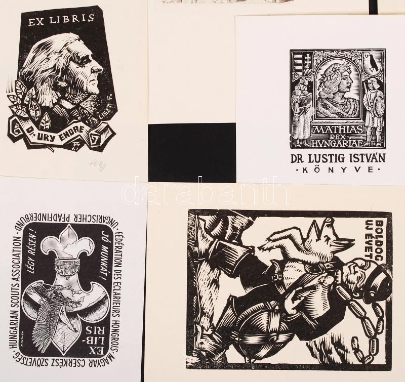cca 1930-1970 30 db ex libris (18 db jelzett), közte: Bordás Ferenc, Fery Antal, Füle Mihály, Menyhárt József, Nagy Zoltán, Perei Zoltán, Szűcs Pál, Németh Nándor, stb.