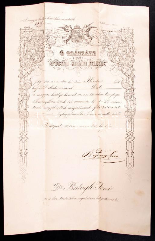 1895 Honvéd orvos főorvosi kinevezési okmánya b. Fejérváry Géza honvéd... https://www.darabanth.com/de/207-Fernauktion/207.0/Andere-Sammelgebiete/Landkarten~600025/1895-Honved-orvos-foorvosi-kinevezesi-okmanya-b-Fejervary-Geza-honvedelmi-miniszter-sajat-~II823709