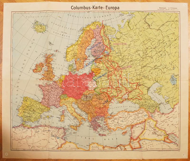 cca 1940 Europa térkép rajta a frontvonalakkal / Map of Europe 60x80 c... https://www.darabanth.com/de/207-Fernauktion/207.0/Andere-Sammelgebiete/Landkarten~600025/cca-1940-Europa-terkep-rajta-a-frontvonalakkal-Map-of-Europe-60x80-cm~II827049