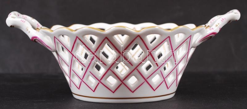Beschreibung: Herendi Apponyi mintás áttört füles porcelán kosár, hibátlan, jelzett, m:8 cm, 20x15 cm