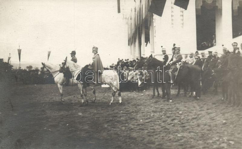 Beschreibung: Ferdinánd román király és Mária királyné / Ferdinand and Queen Mary of Romania, possibly with Foch marsall in the background; photo