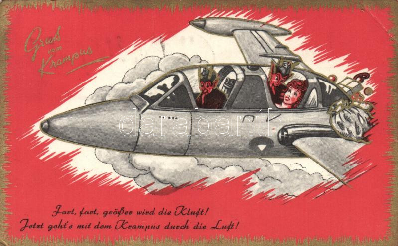 1968 Krampus, airplane, humour (EK) https://www.darabanth.com/de/207-Fernauktion/207.0/Ansichtskarten/Krampus~600052/1968-Krampus-airplane-humour-EK~II837662