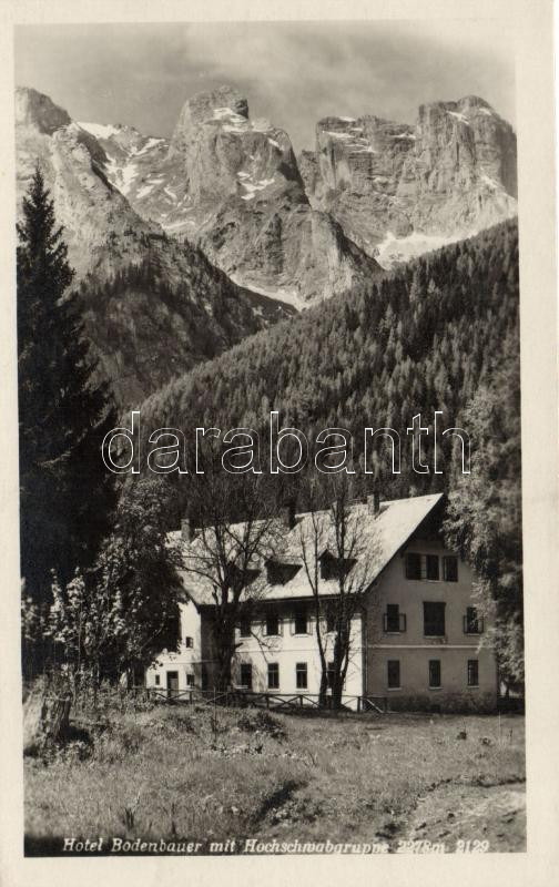 Hochschwabgruppe, Hotel Bodenbauer https://www.darabanth.com/de/207-Fernauktion/207.0/Ansichtskarten/Osterreich~600051/Hochschwabgruppe-Hotel-Bodenbauer~II839598