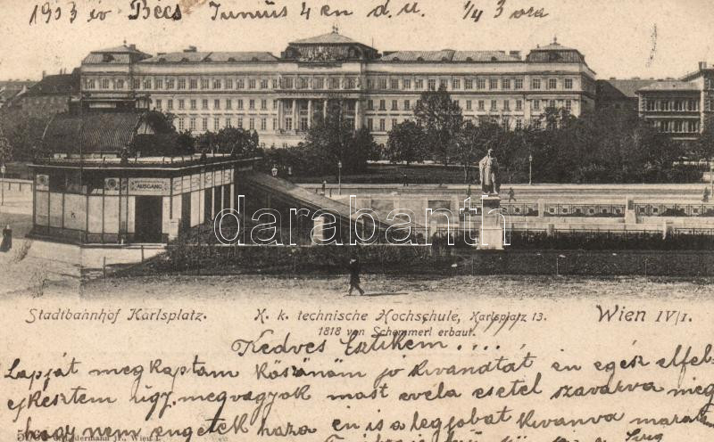 Vienna, Wien IV/1. K.K. technische Hochschule, Karlsplatz 13 https://www.darabanth.com/de/207-Fernauktion/207.0/Ansichtskarten/Osterreich~600051/Vienna-Wien-IV1-KK-technische-Hochschule-Karlsplatz-13~II843401