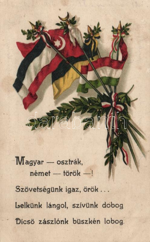 Hungarian-Austrian-German-Turkish association, flags, litho https://www.darabanth.com/de/207-Fernauktion/207.0/Ansichtskarten/Propaganda~600073/Hungarian-Austrian-German-Turkish-association-flags-litho~II838257