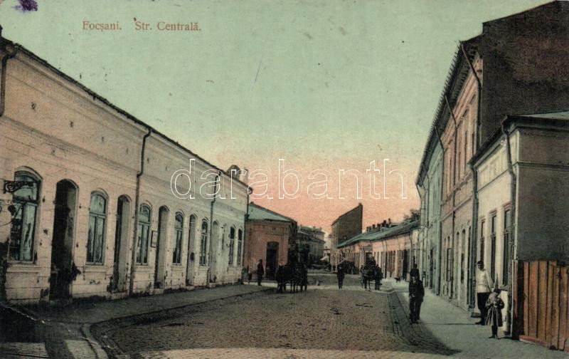 Foksány, Focsani; Str. Centrala / main street (wet damage) https://www.darabanth.com/de/207-Fernauktion/207.0/Ansichtskarten/Rumanien~600148/Foksany-Focsani-Str-Centrala-main-street-wet-damage~II836138