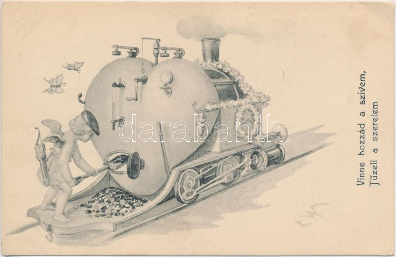 Love locomotive, romantic postcard 'Amor 6. No. 1705.' (EK) https://www.darabanth.com/de/207-Fernauktion/207.0/Ansichtskarten/Schienenverkehr~600112/Love-locomotive-romantic-postcard-Amor-6-No-1705-EK~II817478