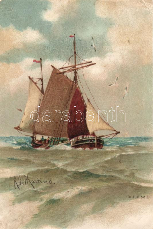 'In full sail' litho s: Martino (small tear) https://www.darabanth.com/de/207-Fernauktion/207.0/Ansichtskarten/Schiffe~600093/In-full-sail-litho-s-Martino-small-tear~II839871