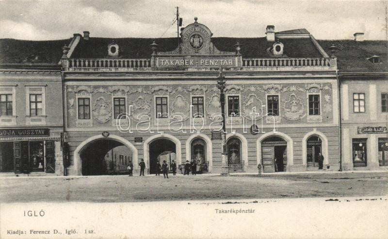 Igló takarékpénztár, üzletek; Ferencz D. kiadása / savings bank, shops... https://www.darabanth.com/de/207-Fernauktion/207.0/Ansichtskarten/Slowakei~7/Iglo-takarekpenztar-uzletek-Ferencz-D-kiadasa-savings-bank-shops-EB~II798477