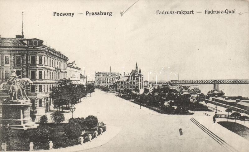 Pozsony, Pressburg, Bratislava; Fadrusz rakpart / quay https://www.darabanth.com/de/207-Fernauktion/207.0/Ansichtskarten/Slowakei~7/Pozsony-Pressburg-Bratislava-Fadrusz-rakpart-quay~II839275