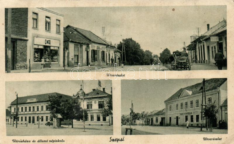 Szepsi, városháza, állami népiskola, Nagyvendéglő / town hall, school,... https://www.darabanth.com/de/207-Fernauktion/207.0/Ansichtskarten/Slowakei~7/Szepsi-varoshaza-allami-nepiskola-Nagyvendeglo-town-hall-school-restaurant-Cikta~II835798