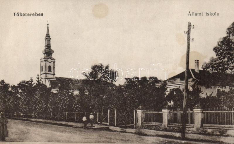 Tőketerebes, Állami iskola, templom / school, church (fl) https://www.darabanth.com/de/207-Fernauktion/207.0/Ansichtskarten/Slowakei~7/Toketerebes-Allami-iskola-templom-school-church-fl~II799162