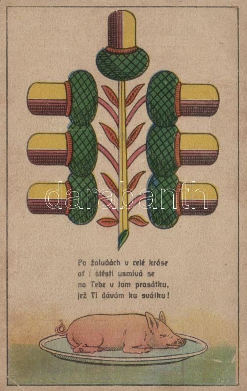 Magyar kártya / Tell playing card, Czech greeting card, pig (fa) https://www.darabanth.com/de/207-Fernauktion/207.0/Ansichtskarten/Spielkarten~600107/Magyar-kartya-Tell-playing-card-Czech-greeting-card-pig-fa~II837433