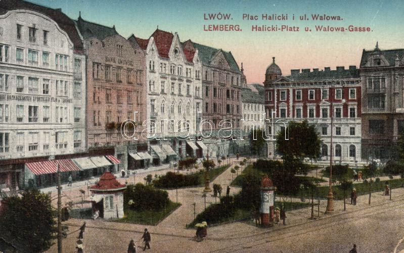 Lviv, Lwów; Halicki square, Walowa street(EK) https://www.darabanth.com/de/207-Fernauktion/207.0/Ansichtskarten/Ukraine~600167/Lviv-Lwow-Halicki-square-Walowa-streetEK~II837160