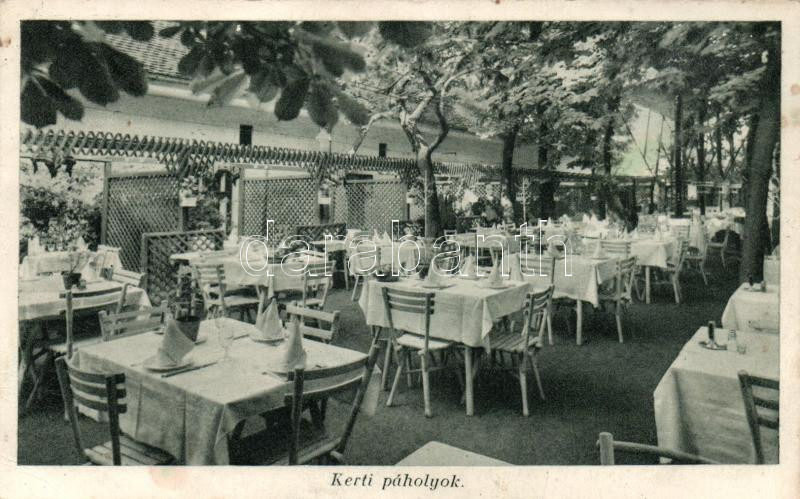 Beschreibung: Budapest II. Hattyú utca 14. Vendéglő a 'Régi zöld hordóhoz' Kerti páholyok